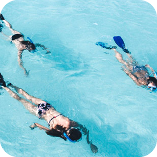 旅行で地元に帰る日でもOK!シュノーケリングは、水中マスクとシュノーケル、足ヒレを着けて、水面から海の中の景色を楽しむアクティビティです。時間がないという方でも気軽に遊べます。半日コースがあり、午前・午後で選べるので好きな時間を選んでネ!