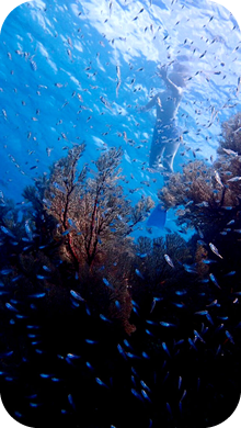 八重山諸島の豊かな海を知り尽くしたスタッフが、透明度の高い海や、たくさんのサンゴ、トロピカルな小魚に出会えるベストポイントへご案内します。